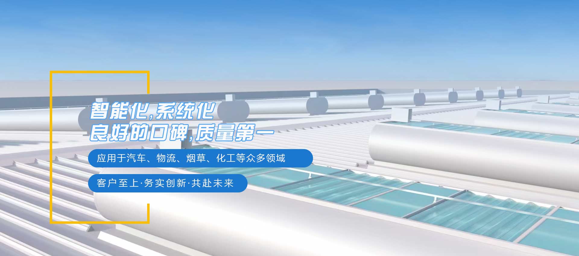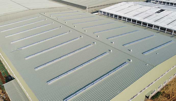 公司主要產品包括各種類型的工業廠房屋面、采光天窗,以及相關配套設施。產品具有優異的耐候性能、防水性能、抗風雪能力以及良好的采光效果,可廣泛應用于汽車、物流、煙草、電池、石油、 化工、電力、電子、食品等眾多行業。憑借著先進的生產設備與技術實力,公司在業界樹立了良好的口碑。